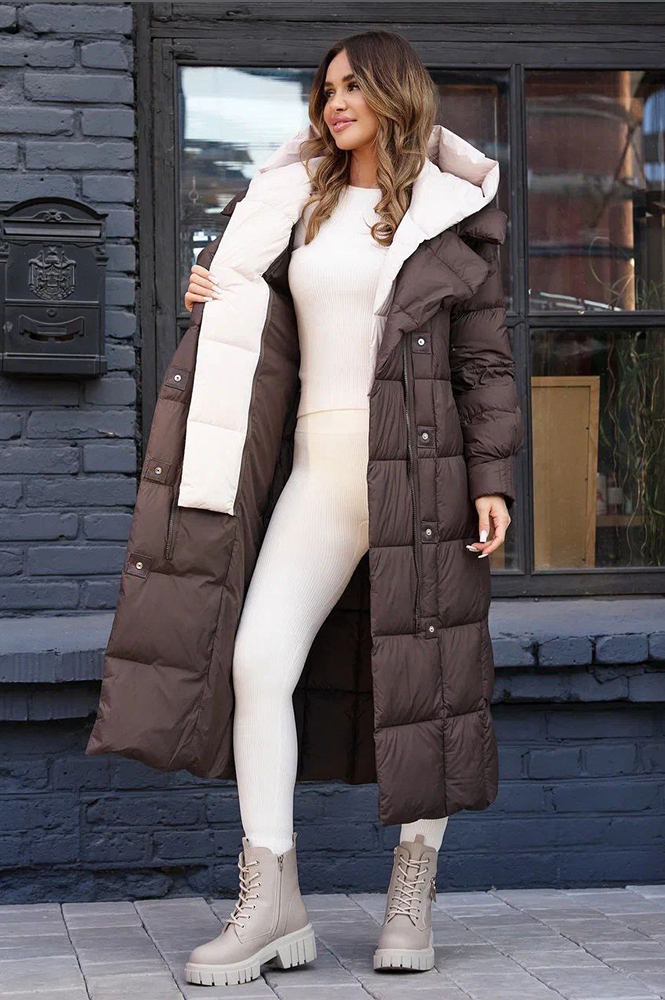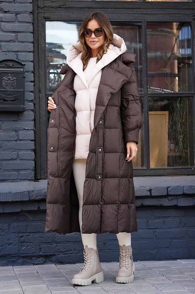 Длинный пуховик приталенный от фирмы Вивилона. Яркий дизайн, высокое качество и теплый пуховой наполнитель. Моель 2025-2026 года. В нашем магазине самый широкий выбор женской верхней одежды.