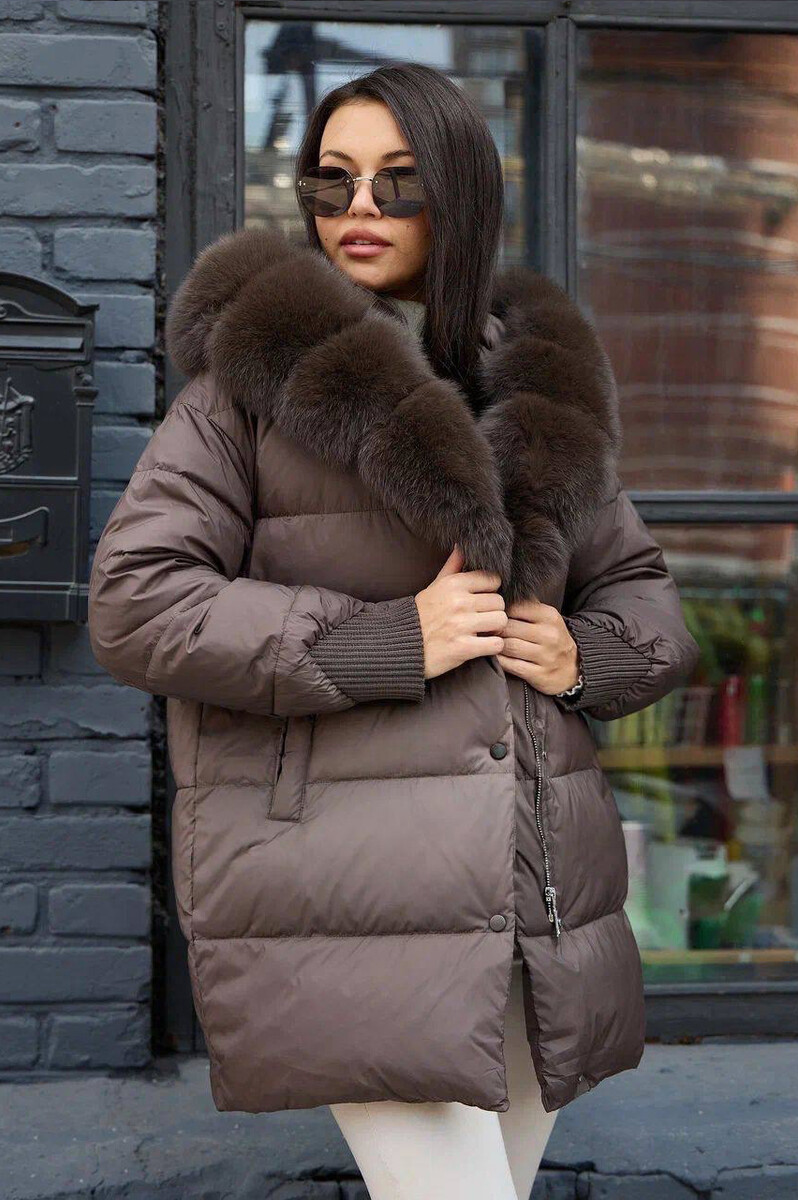 Весь модельный ряд зимних пуховиков из новой коллекции 2025-2026 года имеет стандартный набор: пуховой наполнитель, плотная ткань и шикарный мех песца. В данной модели, есть одно весомое отличие – это крой изделие. Свободный вид необычно смотрится, карманы на передней части накладные, густой мех финского песца приковывает взгляд. Примерить ее можно в нашем магазине.