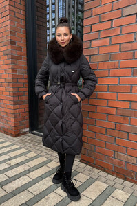Популярный короткий пуховик с меховыми вставками на капюшоне. Изделие из качественной ткани с утеплителем пух-перо. Застегивается модель на молнию. По бокам два врезных кармана. Воротник сделан стойкой, на молнию пристегнут капюшон. При необходимости Вы можете снять и сам капюшон и мех с него. Фасон длинный ниже колен, в области талии немного заужен. Изумительное лекало отлично выглядит визуально, стройнит фигуру и вытягивает рост, меховые карманы отстегиваются.