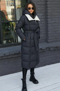 Красивый пуховик одеяло в черном цвете. Европейский дизайн, правильно разработанное лекало позволяет безупречно ему садиться по фигуре. Теплый наполнитель согреет Вас зимой. Прострочка горизонтальная, фасон оверсайз. Примерить его можно в нашем шоуруме, где представлено свыше ста моделей зимней верхней одежды для женщин.