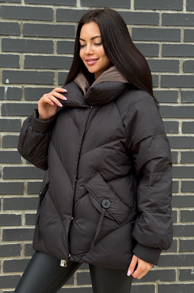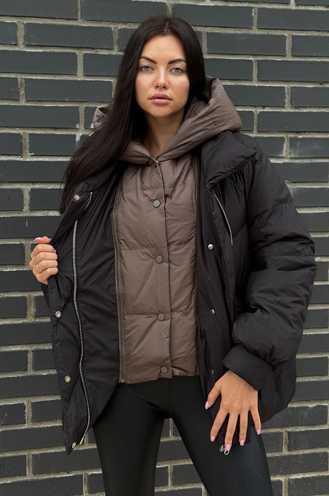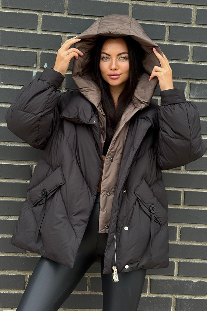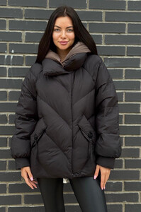 Пуховик с высоким воротником от Pang Million и капюшоном
