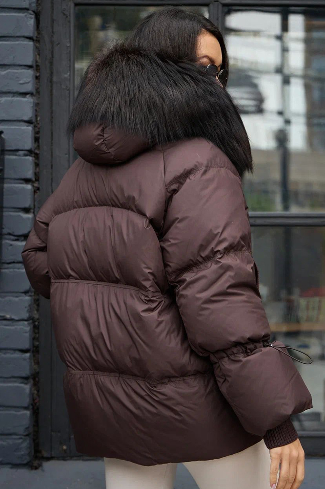 Пуховик с высоким воротником от Вотарун и капюшоном