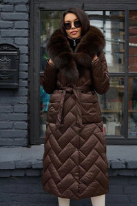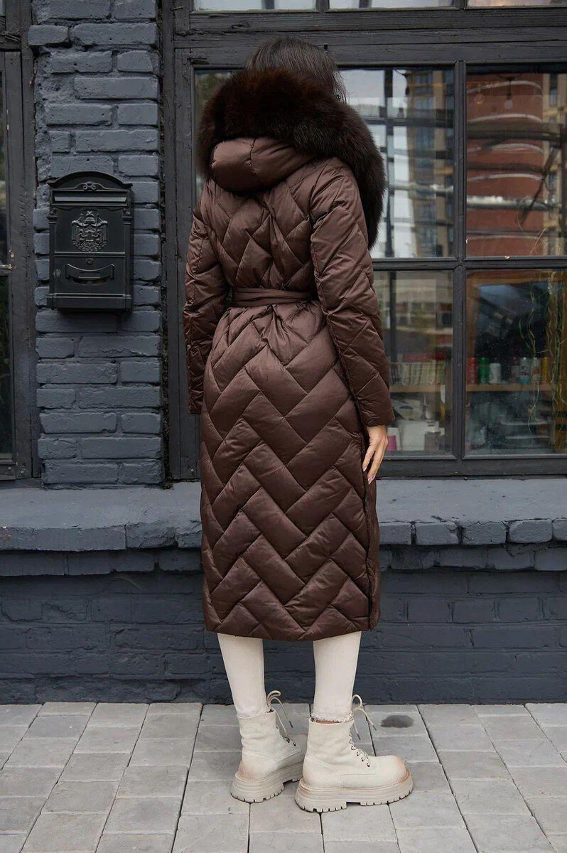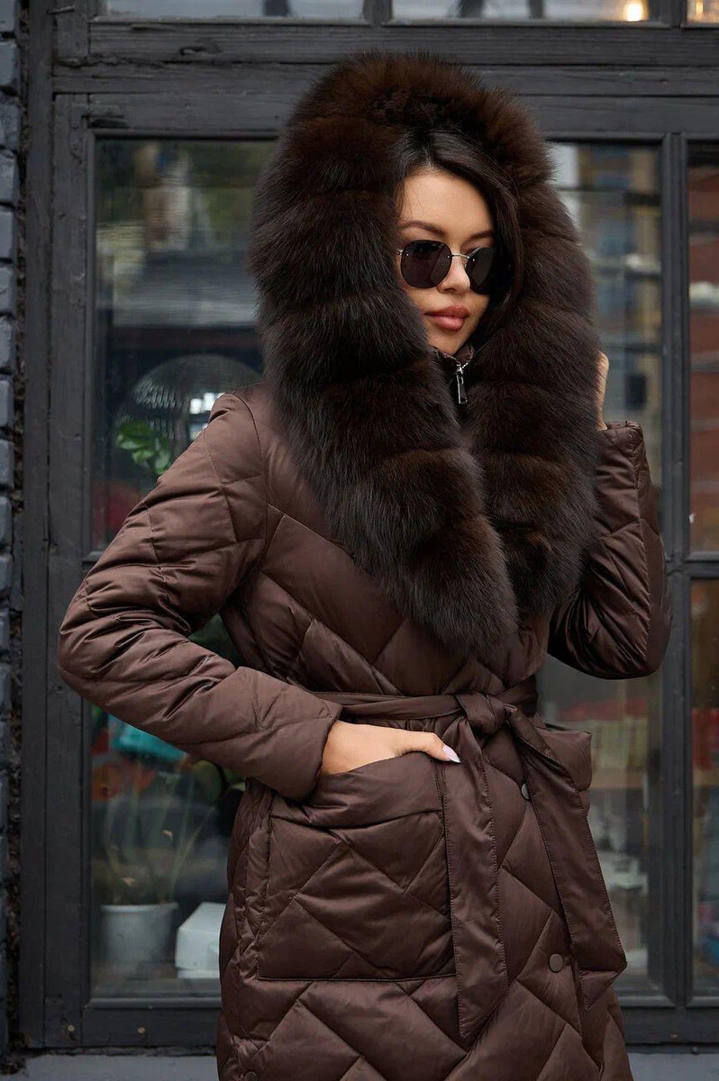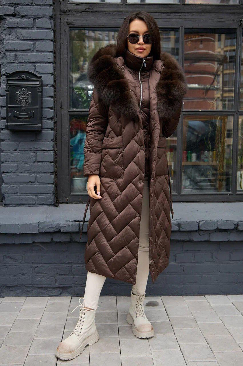 Модный пуховик Vivilona в черном цвете. Куртка из модельного ряда 2025 года выглядит очаровательно. Ровная прострочка, фабричная фурнитура, по бокам изделие украшено накладными карманами, на воротнике – меховая опушка из песца. Купить зимнюю длинную куртку можно в нашем магазине.