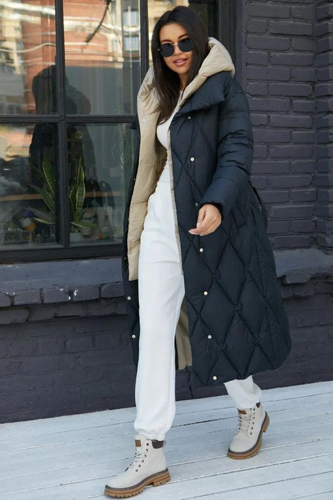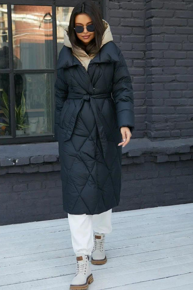 Длинный зимний пуховик одеяло черного цвета. Изделие застегивается на магнитные кнопки, два кармана по бокам. В нашем ассортименте есть все размеры и разные цвета. Можете оформить доставку до дома, привезем на выбор разные размеры.