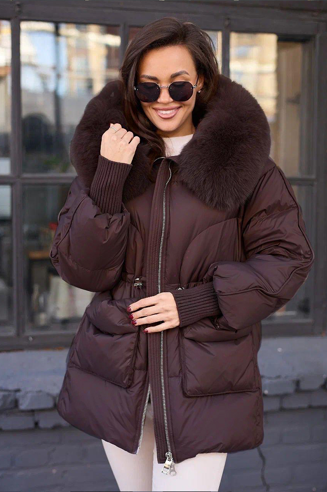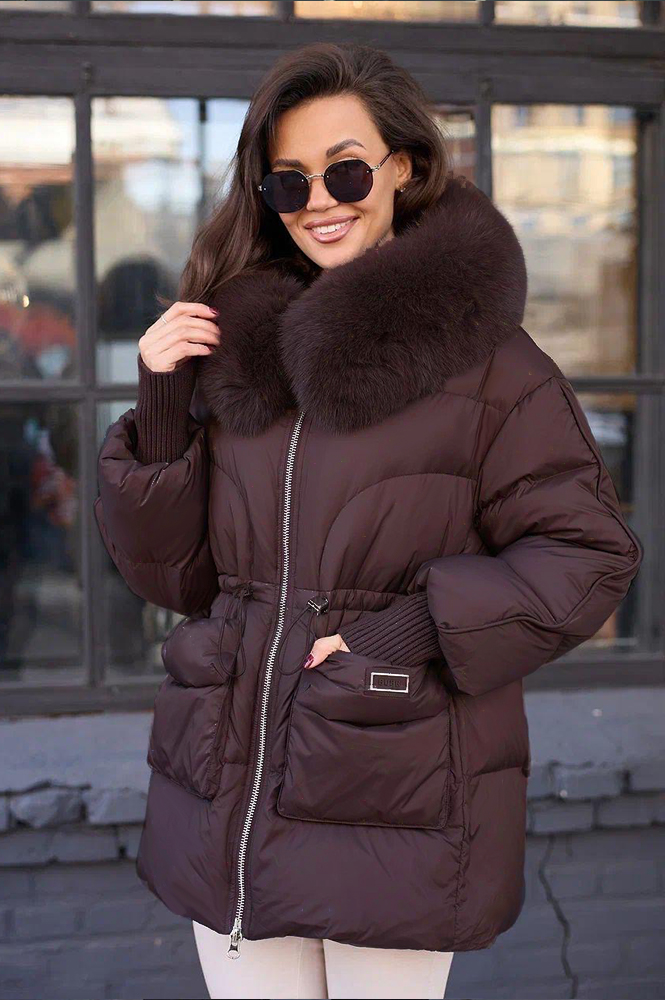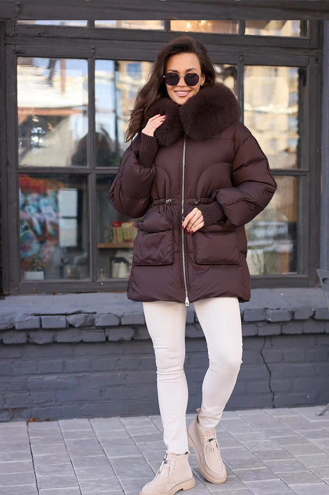 Длинный женский пуховик Pang Million нового зимнего каталога 2025-2026. Утеплен пухом и пером, на капюшоне натуральный мех енота. Застежка на молнию, по бокам вырезы для свободы передвижения. Глубокие боковые карманы застегиваются на кнопки. Купить пуховик Вы можете в нескольких цветах и размерах.