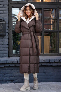 Длинный пуховик приталенный от фирмы Вивилона. Яркий дизайн, высокое качество и теплый пуховой наполнитель. Моель 2025-2026 года. В нашем магазине самый широкий выбор женской верхней одежды.