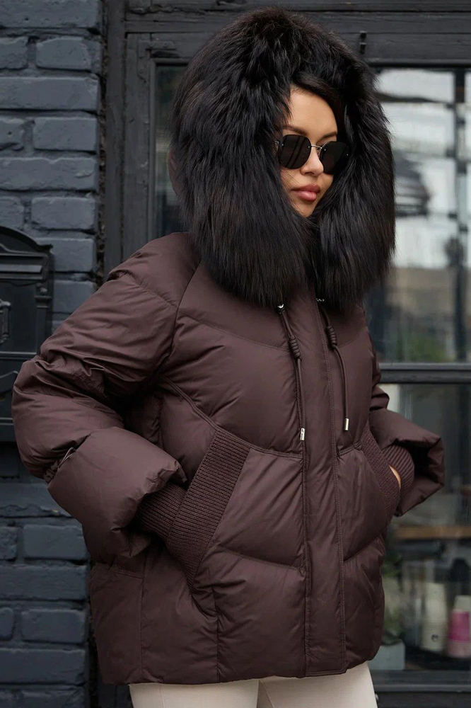 Пуховик с высоким воротником от Вотарун и капюшоном