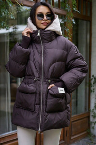 Стильная новинка 2025 года фабрики Pang Million. Изделие в дорогой ткани с воротником и капюшоном. Модель красивого оттенка застегивается на молнию и магнитные кнопки. Лекало приталенное, немного расширяется к низу. Капюшон втачной. Карманы боковые с защитными клапанами, на рукавах есть манжеты. Доступная цена, высокое качество и превосходные тепловые свойства ждут покупательниц представленного изделия.
