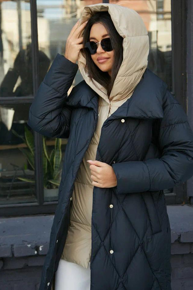 Длинный зимний пуховик одеяло черного цвета. Изделие застегивается на магнитные кнопки, два кармана по бокам. В нашем ассортименте есть все размеры и разные цвета. Можете оформить доставку до дома, привезем на выбор разные размеры.