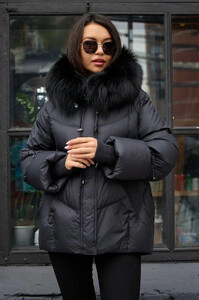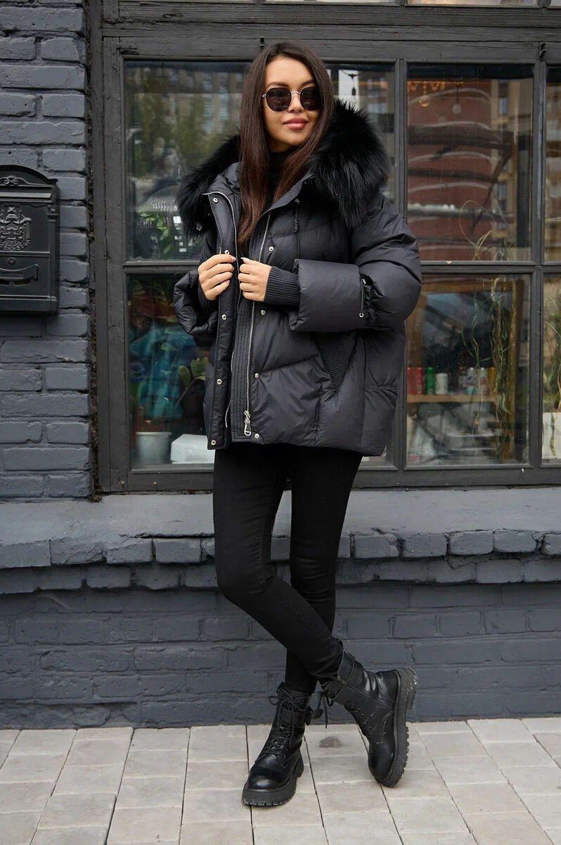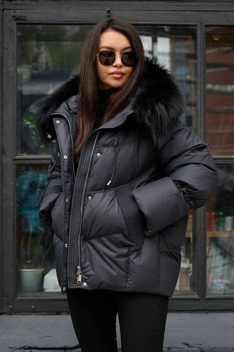 Женский зимний пуховик Во тарун. Изделие длинной ниже колена, черного цвета. Застежка молния, капюшон, воротник стойка.