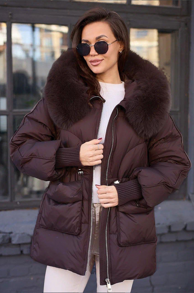 Длинный женский пуховик Pang Million нового зимнего каталога 2025-2026. Утеплен пухом и пером, на капюшоне натуральный мех енота. Застежка на молнию, по бокам вырезы для свободы передвижения. Глубокие боковые карманы застегиваются на кнопки. Купить пуховик Вы можете в нескольких цветах и размерах.