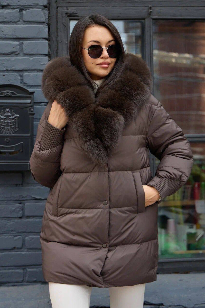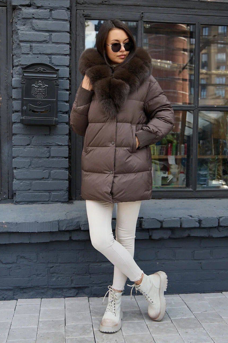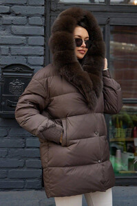 Весь модельный ряд зимних пуховиков из новой коллекции 2025-2026 года имеет стандартный набор: пуховой наполнитель, плотная ткань и шикарный мех песца. В данной модели, есть одно весомое отличие – это крой изделие. Свободный вид необычно смотрится, карманы на передней части накладные, густой мех финского песца приковывает взгляд. Примерить ее можно в нашем магазине.